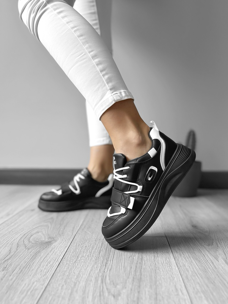 Adidasi dama casual cu talpa inalta negru cu alb CL2333 T7-1 face parte din categoria Incaltaminte > Incaltaminte dama > Adidasi dama de la brandul DeHaine.