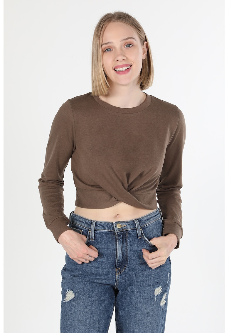 Bluza crop din jerseu cu detaliu frontal rasucit face parte din categoria FEMEI/IMBRACAMINTE/Bluze IMBRACAMINTE/Bluze de la brandul COLIN’S.