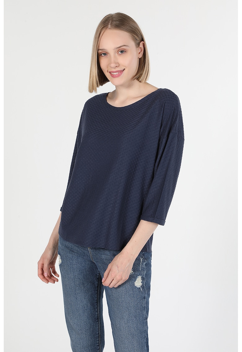 Bluza cu decolteu rotund si maneci trei sferturi face parte din categoria FEMEI/IMBRACAMINTE/Bluze IMBRACAMINTE/Bluze de la brandul COLIN’S.