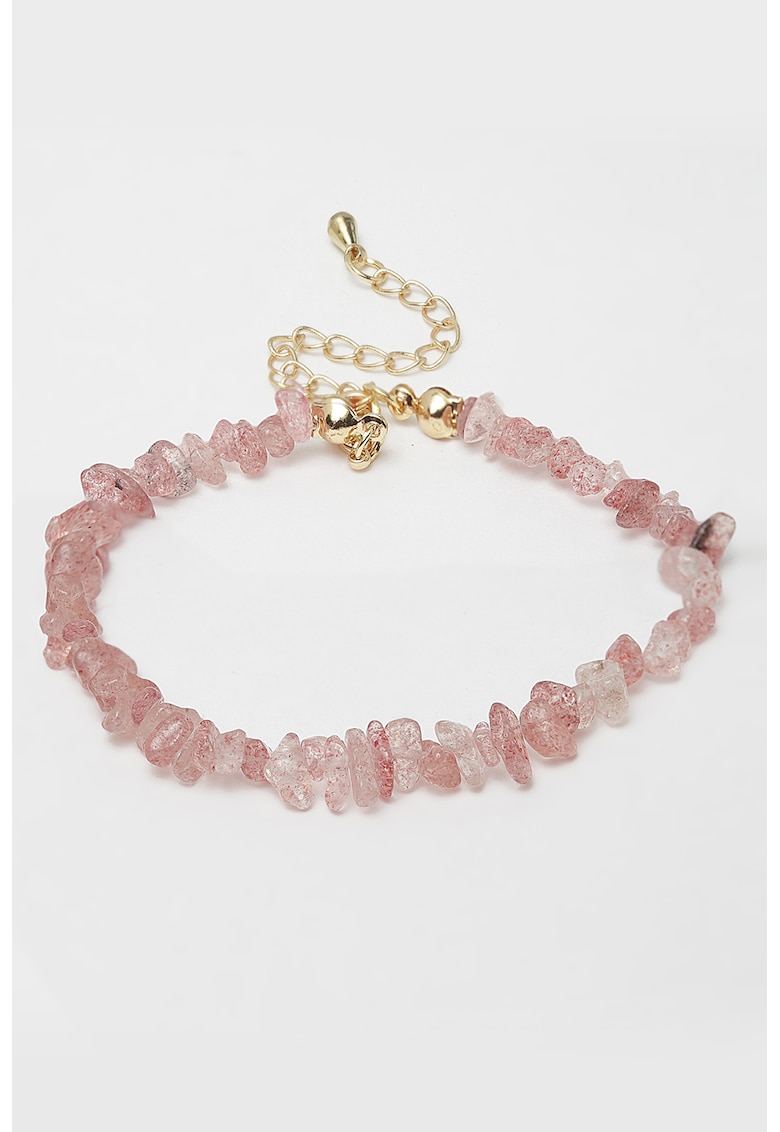 Caracteristici Tip produs: bratara Material: aliaj – zinc Culoare: auriu – roz Detalii: ajustabila Sistem inchidere: lobster Ambalaj: produsul se livreaza in ambalaj personalizat. Compozitie Compozitie: aliaj de zinc Pietre: cristale Dimensiuni Diametru: 6.5 cm Informatii suplimentare: a se evita lovirea – zgarierea – contactul cu alcool – parfum – acetona – detergent – suprafete abrazive.