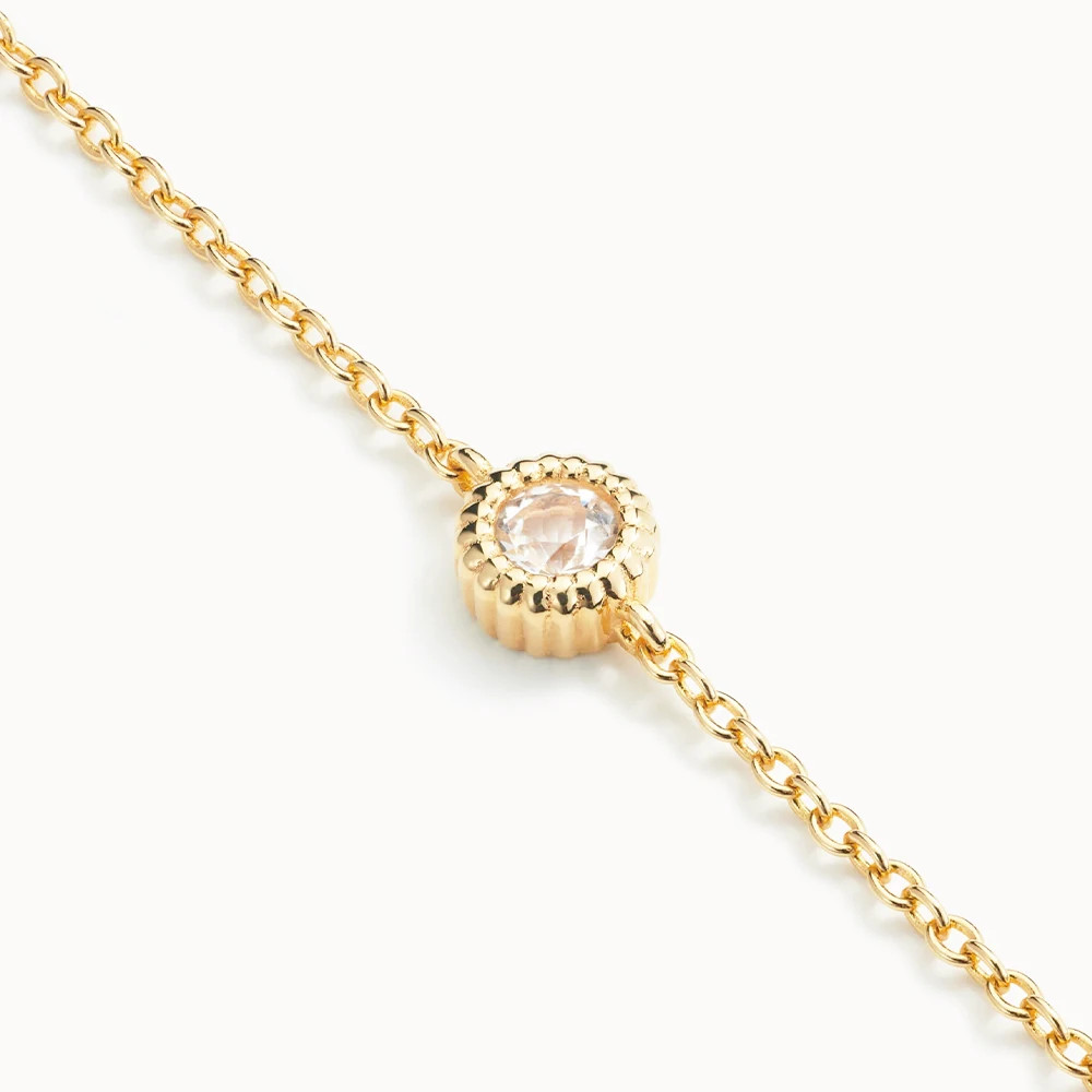 material: Argint 925 placat cu aur; inchidere clasica; material piatra: zirconiu; dimensiune pandantiv: 0.5 cm; lungime bratara reglabila: 17+3 cm; gramaj aprox.: 0.8 g; finisaje premium, de lux. Ingrijirea bijuteriilor : Dupa purtare va recomandam sa pastrati bijuteriile in ambalajul original sau intr-un saculet dintr-un material moale, pentru a evita zgarieturile. Pentru a le reda stralucirea este necesar sa le stergeti cu o carpa moale sau cu solutii speciale pentru curatarea argintului. Inainte de culcare, baie sau activitati similare in care bijuteriile ar intra in contact cu apa, produse cosmetice, detergenti, corozive sau chimice, scoateti bijuteriile deoarece aceste produse pot decolora sau modifica stralucirea. Evitati loviturile bruste deoarece ar putea cauza zgarieturi, ciobiri si alte daune si nu lipiti cristalele dezlipite cu adezivi tip super glue, picatura sau orice alt tip.