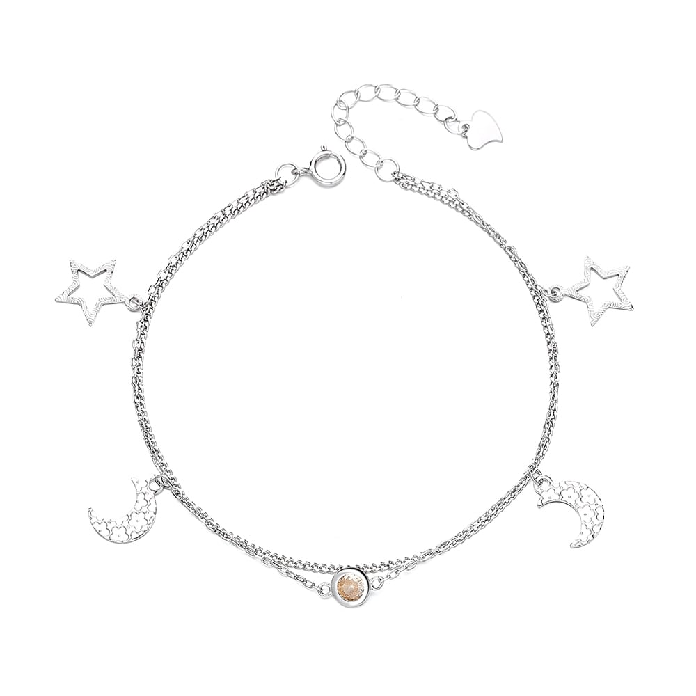 Bratara argint 925, JW1224, model dublu semiluna si stelute, placata cu rodiu face parte din categoria Bijuterii argint dama Bratari argint dama de la brandul DELIS.