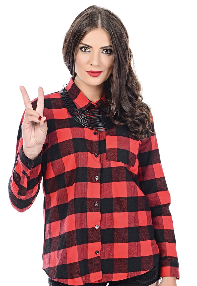 Caracteristici Culoare: rosu – negru Imprimeu: carouri Stil: casual Material: bumbac Croiala: regular fit Guler: ascutit Lungime maneca: maneca lunga Buzunare: aplicatie frontala Sistem inchidere: nasturi Compozitie Exterior: 100% bumbac