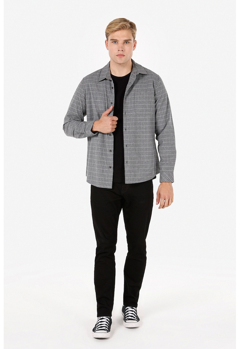 Caracteristici Culoare: alb – gri melange Material: bumbac Imprimeu: carouri Stil: casual Croiala: regular fit Guler: clasic Lungime maneca: maneca lunga Sistem inchidere: nasturi Compozitie Exterior: 100% bumbac