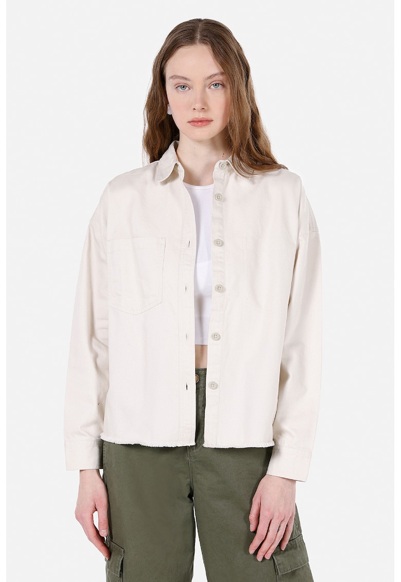 Caracteristici Culoare: alb murdar Imprimeu: uni Stil: casual Material: bumbac – lyocell Croiala: regular fit Lungime maneca: maneca lunga Sistem inchidere: nasturi Compozitie Exterior: 81% bumbac – 19% lyocell