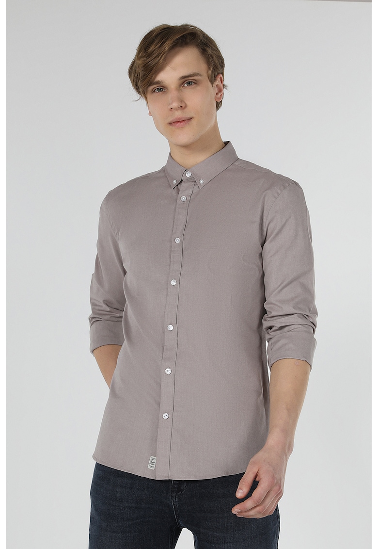 Caracteristici Culoare: maro taupe deschis Material: bumbac Imprimeu: uni Stil: casual Croiala: slim fit Guler: fixat cu nasturi Maneci: mansete cu nasturi Lungime maneca: maneca lunga Detalii: terminatie rotunjita Sistem inchidere: nasturi Compozitie Exterior: 100% bumbac