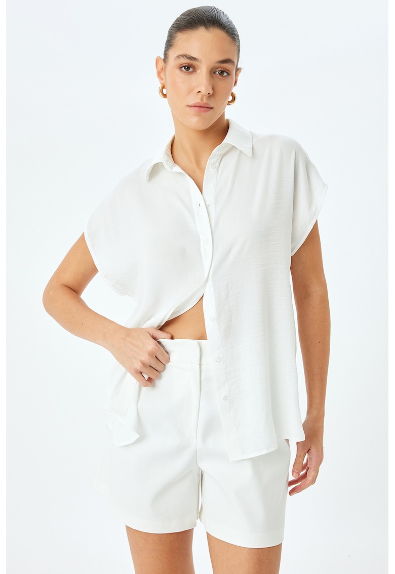 Caracteristici Culoare: alb murdar Imprimeu: uni Stil: casual Material: poliester Croiala: lejer Lungime maneca: maneca scurta Sistem inchidere: nasturi Compozitie Exterior: 100% poliester