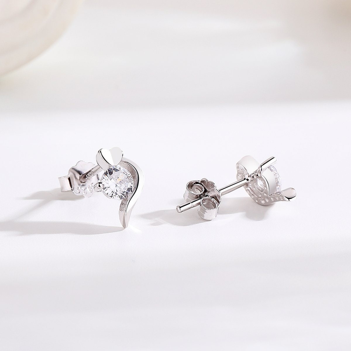 Cercei argint 925, JW1588, model inima, placati cu rodiu face parte din categoria Bijuterii argint dama Cercei argint dama de la brandul DELIS.