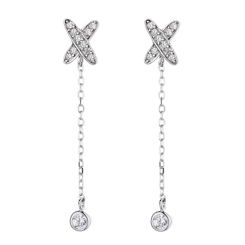 Cercei lungi argint 925, JW847, model elegant, placati cu rodiu face parte din categoria Bijuterii argint dama Cercei argint dama de la brandul DELIS.