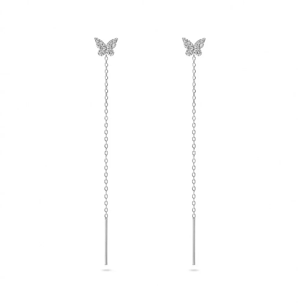 Cercei lungi argint 925, JW967, model fluture, placati cu rodiu face parte din categoria Bijuterii argint dama Cercei argint dama de la brandul DELIS.