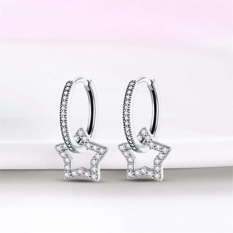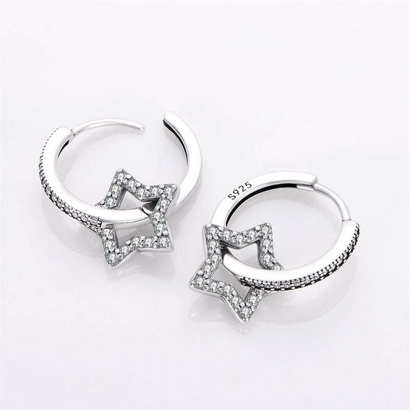Cercei rotunzi argint 925, JW608, model stea, placati cu rodiu face parte din categoria Bijuterii argint dama Cercei argint dama de la brandul DELIS.