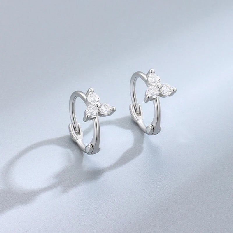 cercei de argint 925, placati cu rodiu; inchidere: prindere cu arc ; material piatra: zirconiu; dimensiune: 1 cm; greutate: 0.95 g; finisaje premium de lux. Ingrijirea bijuteriilor : Dupa purtare va recomandam sa pastrati bijuteriile in ambalajul original sau intr-un saculet dintr-un material moale, pentru a evita zgarieturile. Pentru a le reda stralucirea este necesar sa le stergeti cu o carpa moale sau cu solutii speciale pentru curatarea argintului. Inainte de culcare, baie sau activitati similare in care bijuteriile ar intra in contact cu apa, produse cosmetice, detergenti, corozive sau chimice, scoateti bijuteriile deoarece aceste produse pot decolora sau modifica stralucirea. Evitati loviturile bruste deoarece ar putea cauza zgarieturi, ciobiri si alte daune si nu lipiti cristalele dezlipite cu adezivi tip super glue, picatura sau orice alt tip.