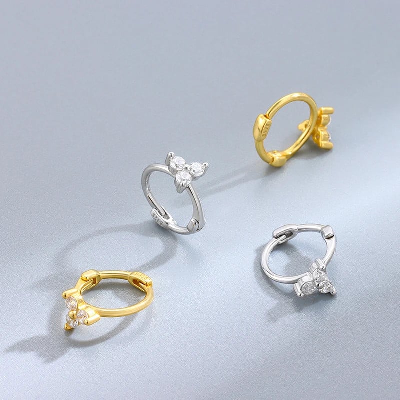 Cercei rotunzi argint 925, JW943, model floare, placati cu rodiu face parte din categoria Bijuterii argint dama Cercei argint dama de la brandul DELIS.