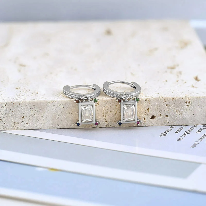 cercei de argint 925, placati cu rodiu; inchidere: prindere cu arc ; material piatra: zirconiu; dimensiune: 2 cm; greutate: 1.63 g; finisaje premium de lux. Ingrijirea bijuteriilor : Dupa purtare va recomandam sa pastrati bijuteriile in ambalajul original sau intr-un saculet dintr-un material moale, pentru a evita zgarieturile. Pentru a le reda stralucirea este necesar sa le stergeti cu o carpa moale sau cu solutii speciale pentru curatarea argintului. Inainte de culcare, baie sau activitati similare in care bijuteriile ar intra in contact cu apa, produse cosmetice, detergenti, corozive sau chimice, scoateti bijuteriile deoarece aceste produse pot decolora sau modifica stralucirea. Evitati loviturile bruste deoarece ar putea cauza zgarieturi, ciobiri si alte daune si nu lipiti cristalele dezlipite cu adezivi tip super glue, picatura sau orice alt tip.