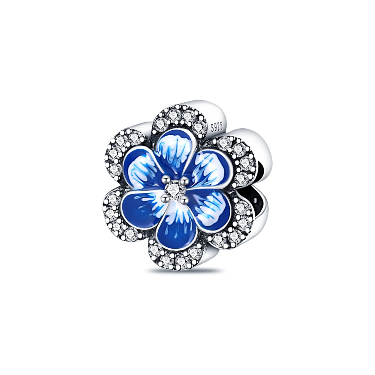 Charm/talisman argint 925, JW1121, model floare alb/albastra, placat cu rodiu face parte din categoria Bijuterii argint dama Charmuri/Talismane de la brandul DELIS.