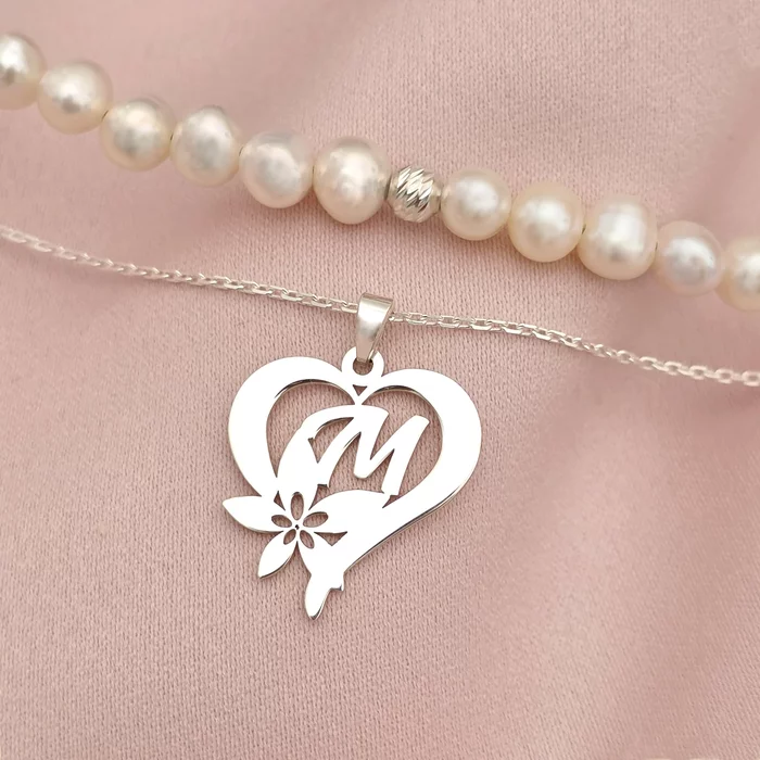Colier Floarea Dragostei – Pandantiv inima cu initiala – Lantisor & Sirag de Perle – Argint 925 face parte din categoria Colectii >> Comori Perlate >> Noutati de la brandul ChicBijoux.