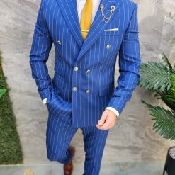 Costum de barbati albastru in dungi: Sacou si Pantalon – C4673