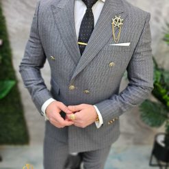 Costum de bărbați Gri cu nasturi aurii: Sacou, Vesta si Pantalon – C4680