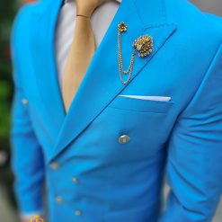 Costum de bărbați Albastru cu nasturi aurii: Sacou, Vesta si Pantalon – C4681