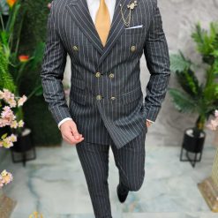 Costum de barbati gri inchis in dungi: Sacou si Pantalon – C4665