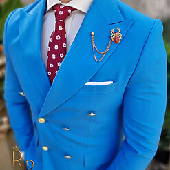 Costum de barbati albastru deschis cu butoni aurii: Sacou si Pantalon – C4089