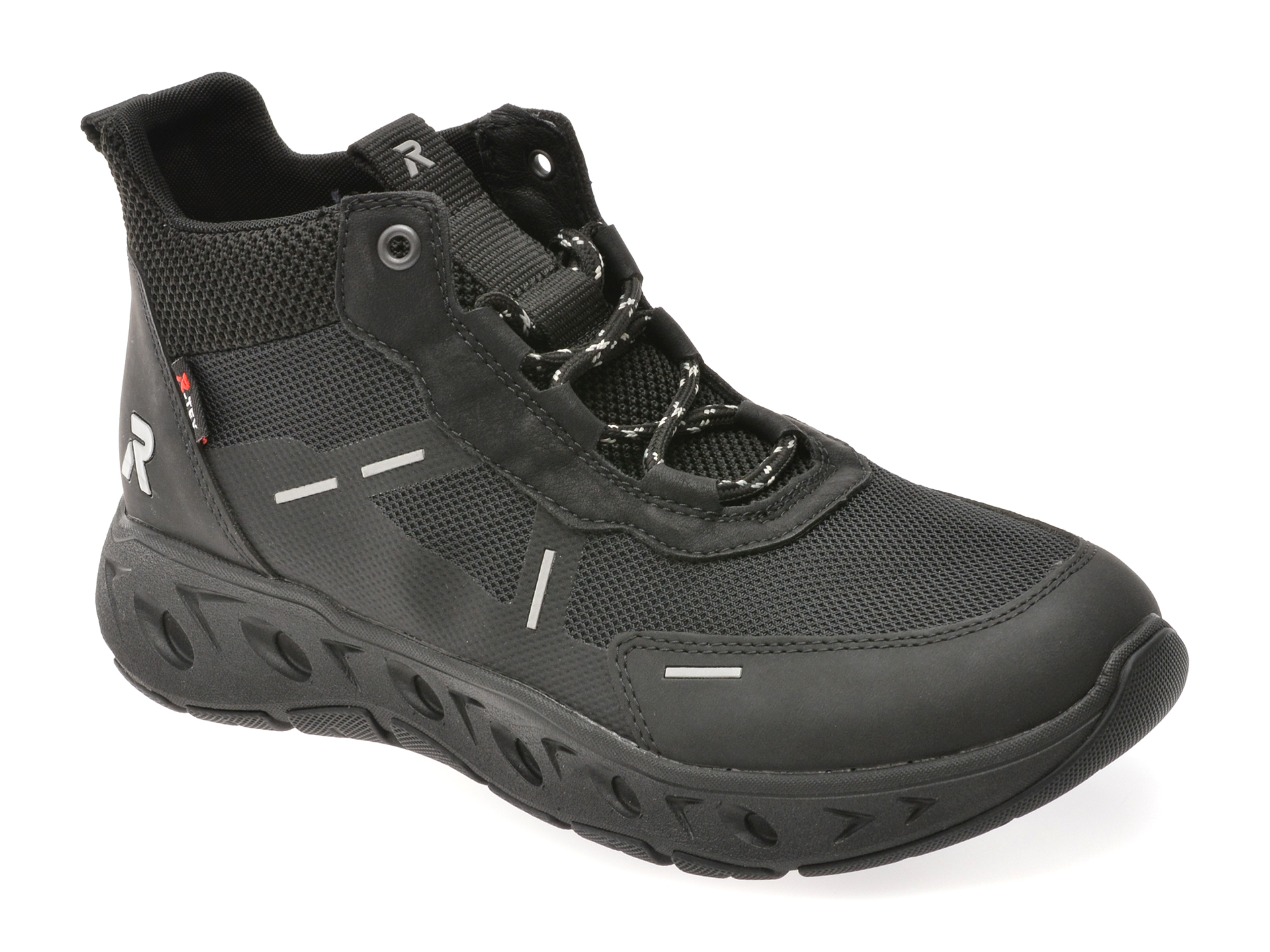 Ghete RIEKER negre, M6500, din material textil , Pentru: Femei , Brand: Rieker , culoare: Negru , Material exterior: Material textil , Material talpa: Cauciuc termoplastic , Tip inchidere: Siret . Livrare gratuita pentru comenzile de peste 299 RON acasa si in locker. Retur gratuit de acasa sau in locker.