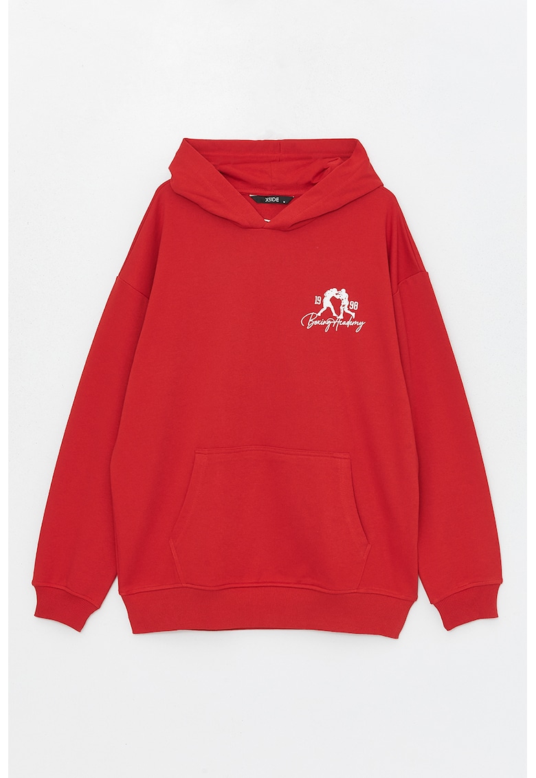 Caracteristici Tip produs: hanorac Culoare: rosu – alb Imprimeu: text Material: poliester – bumbac Croiala: regular fit Sistem inchidere: fara inchidere Maneci: cazute Lungime maneca: maneca lunga Compozitie Exterior: 67% bumbac – 33% poliester