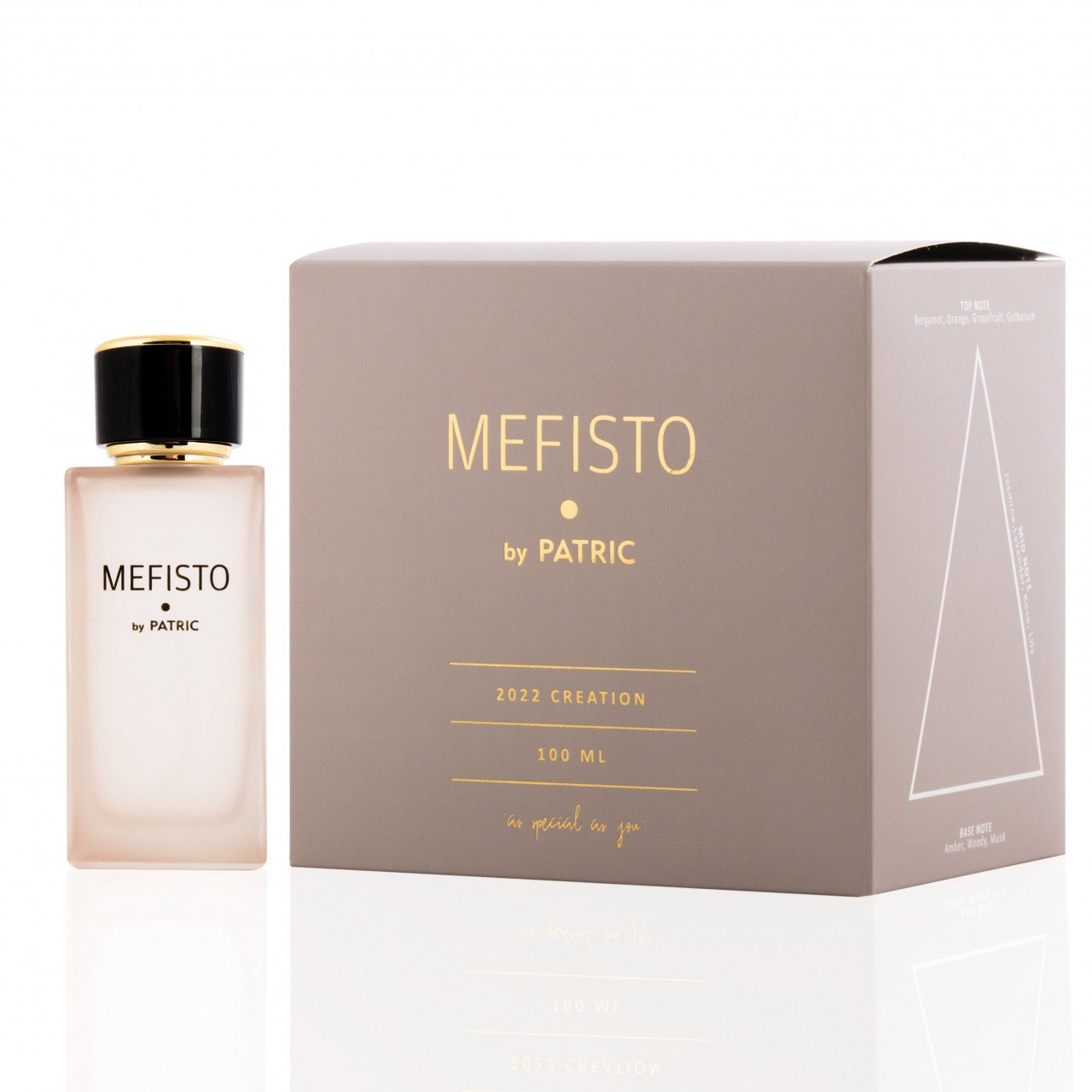 Mefisto by Patric Sclipește în întunericul nopții care stimulează toate simțurile… O rapsodie sclipitoare de nuanțe calde de galban și citrice învăluie întreaga compoziție, lăsând o amintire de neuitat cu o notă orbitoare de iasomie, lavandă și chihlimbar. Miros similar cu Xerjoff Casamorati – 1888 Mefisto Notă de varf: Bergamotă, portocală, grapefruit, galbanum Notă de inimă: Iasomie, lavandă, trandafir, liliac Notă de bază: Chihlimbar, lemos, mosc