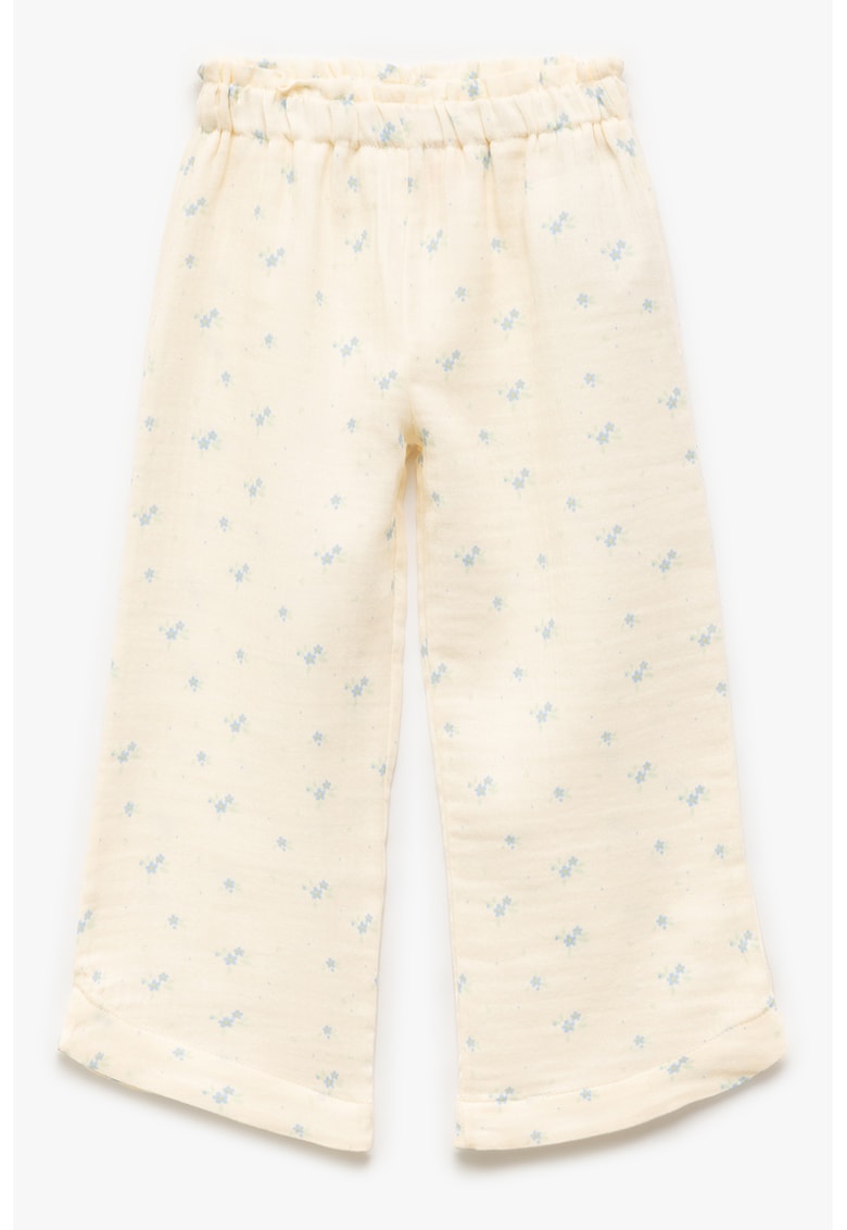 Caracteristici Tip produs: pantaloni lungi Culoare: albastru deschis – bej deschis Material: bumbac Stil: casual Imprimeu: floral Croiala: croiala ampla Talie: medie Detalii: talie elastica Sistem inchidere: fara inchidere Colectie: primavara – vara – toamna – iarna Compozitie Exterior: 100% bumbac