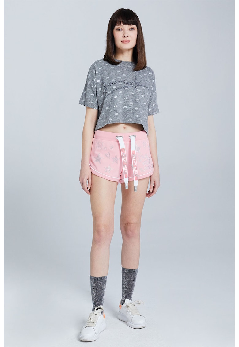 Caracteristici Culoare: roz Stil: casual Material: bumbac organic – sustenabil Imprimeu: stelute – inimioare – text Croiala: regular fit Lungime: scurti Talie: medie Detalii: strasuri – snur pentru ajustare Sistem inchidere: fara inchidere Compozitie Exterior: 100% bumbac organic
