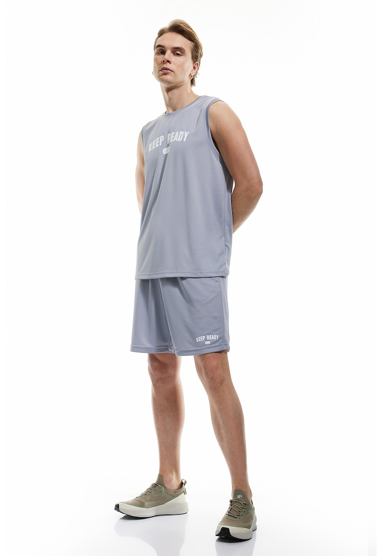 Caracteristici Culoare: gri deschis Imprimeu: uni – text Material: poliester Stil: casual Croiala: dreapta Talie: medie Buzunare: 2 oblice Lungime: scurti Detalii: talie elastica cu snur ajustabil Sistem inchidere: fara inchidere Compozitie Exterior: 100% poliester