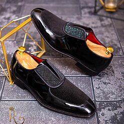 Mocasini/Loafers de barbati negri lacuiti cu strasuri – P1701