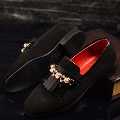 Pantofi Loafers de barbati bordo, piele naturala si catifea – P1485