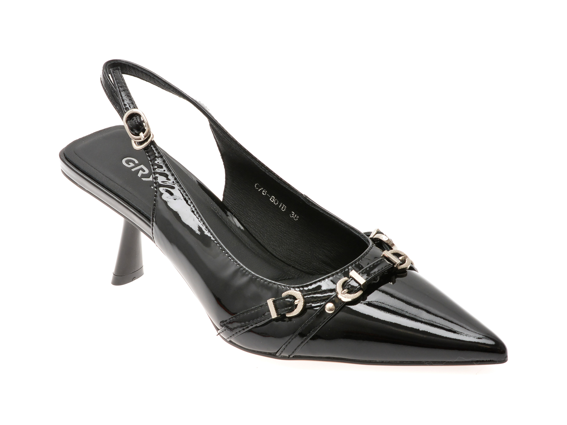 Pantofi eleganti GRYXX negri, C76, din piele naturala lacuita , Pentru: Femei , Brand: Gryxx , culoare: Negru , Material exterior: Piele naturala lacuita , Material talpa: pvc , Tip inchidere: Catarama . Livrare gratuita pentru comenzile de peste 299 RON acasa si in locker. Retur gratuit de acasa sau in locker.