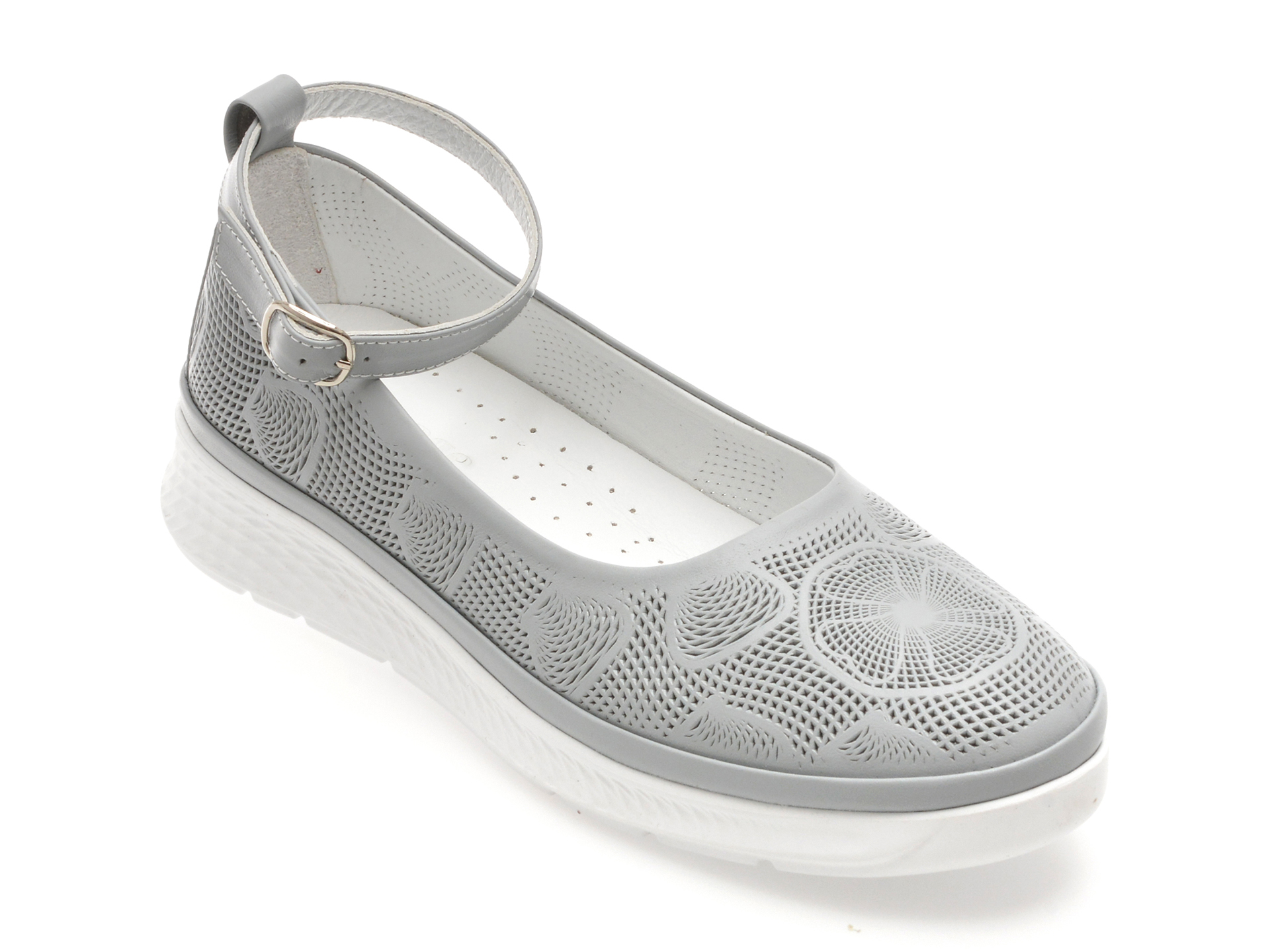 Pantofi IMAGE gri, 18348, din piele naturala , Pentru: Femei , Brand: Image , culoare: Gri , Material exterior: Piele naturala , Material talpa: Cauciuc termoplastic , Tip inchidere: Catarama . Livrare gratuita pentru comenzile de peste 299 RON acasa si in locker. Retur gratuit de acasa sau in locker.