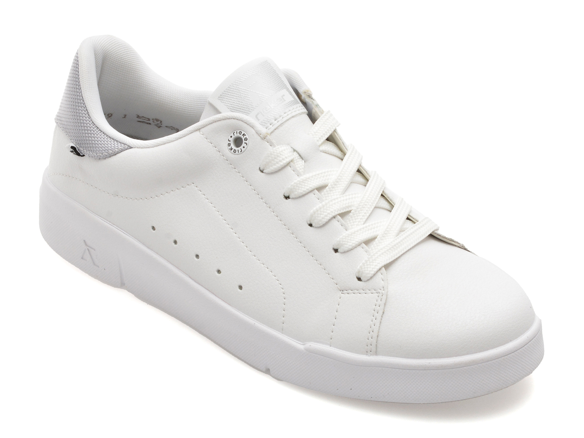 Pantofi sport RIEKER albi, 41902, din piele naturala , Pentru: Femei , Brand: Rieker , culoare: Alb , Material exterior: Piele naturala , Material talpa: Cauciuc termoplastic , Tip inchidere: Siret . Livrare gratuita pentru comenzile de peste 299 RON acasa si in locker. Retur gratuit de acasa sau in locker.