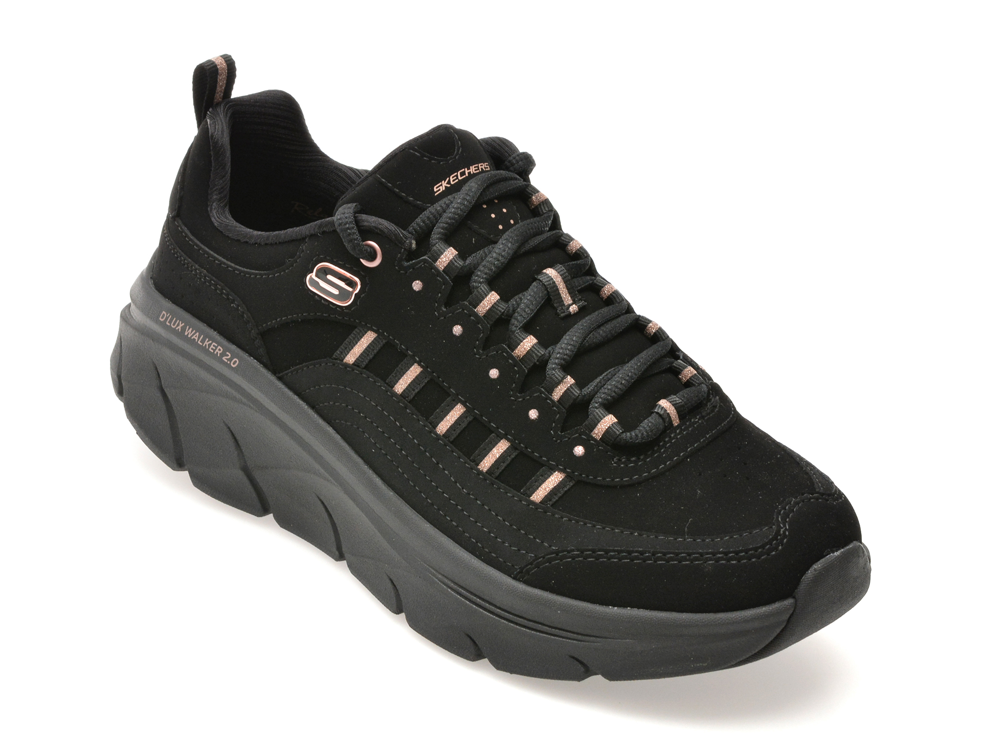 Pantofi sport SKECHERS negri, D LUX WALKER 2.0, din piele naturala face parte din categoria Femei > Pantofi sport de la brandul Skechers.