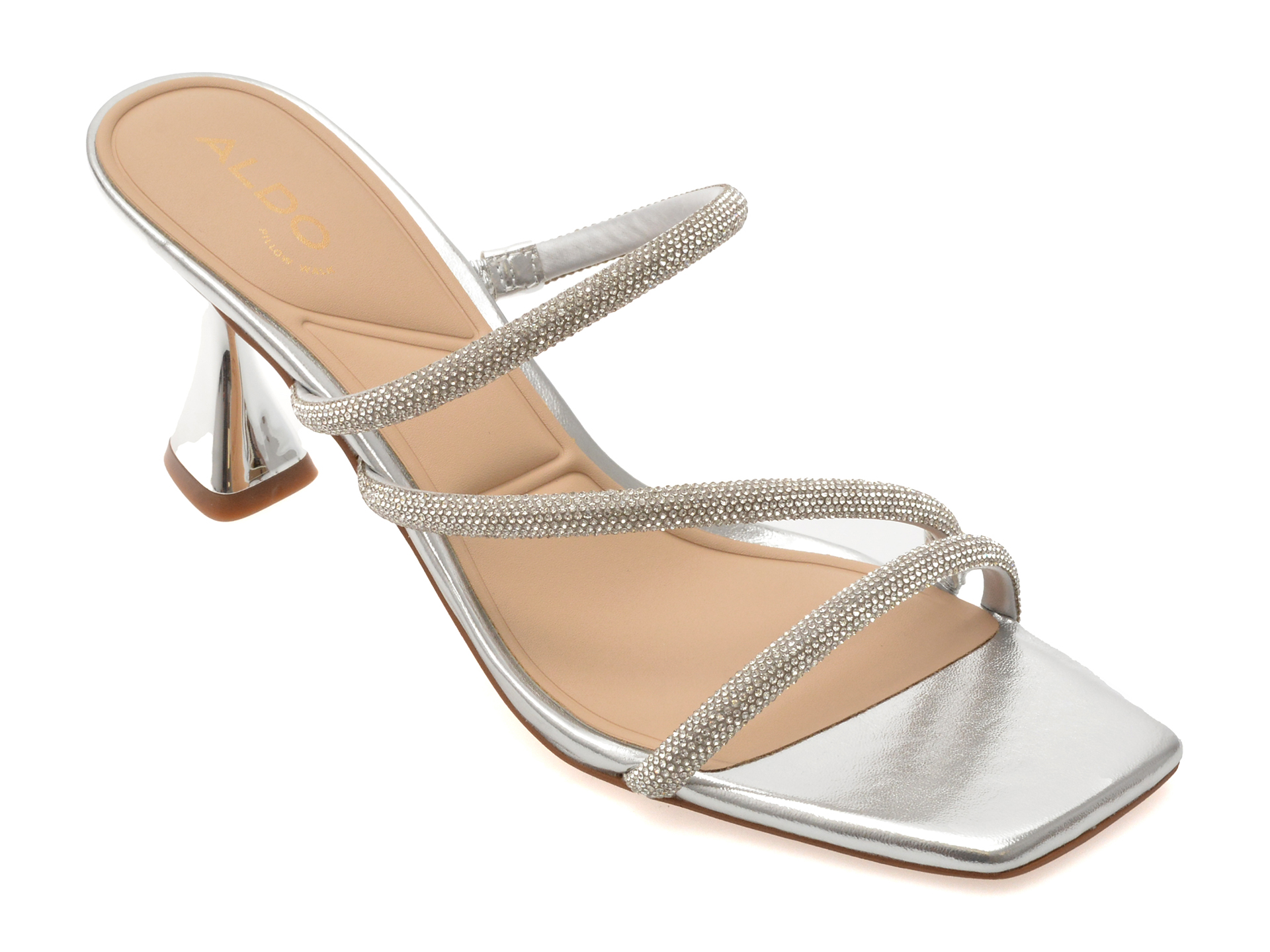 Papuci ALDO argintii, JEWELLA 040, din material textil face parte din categoria Femei > Papuci de la brandul Aldo.