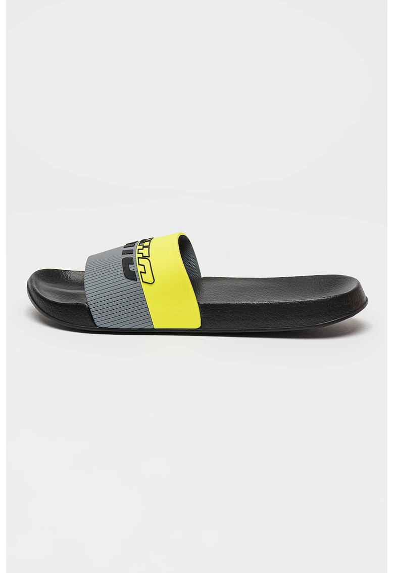 Caracteristici Tip produs: papuci Culoare: negru – verde neon Imprimeu: logo Material: sintetic Compozitie Partea superioara: alte materiale Material interior: alte materiale Material talpa: alte materiale