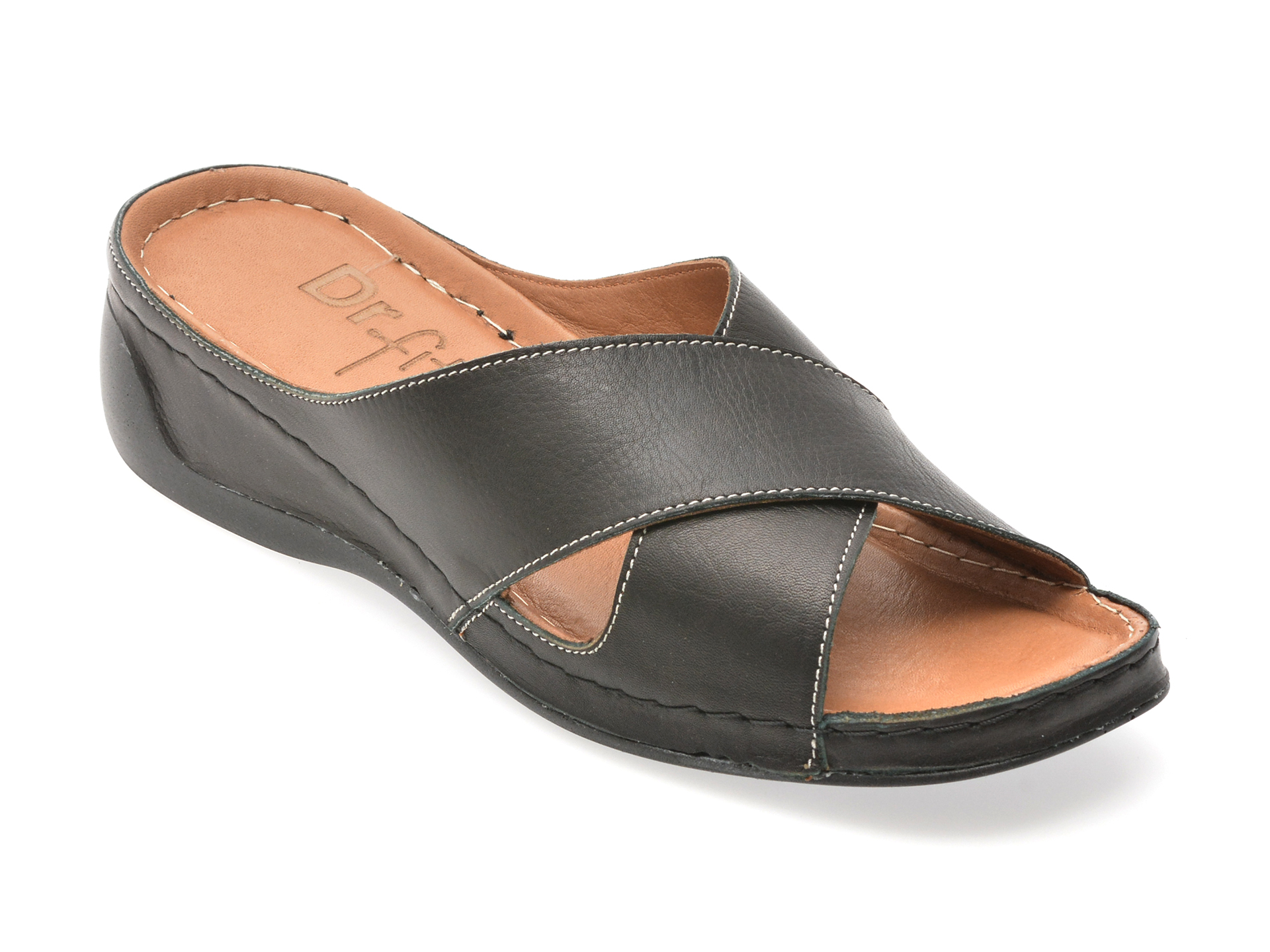 Papuci DR FIT negri, EV2861, din piele naturala , Pentru: Femei , Brand: DR FIT , culoare: Negru , Material exterior: Piele naturala , Material talpa: Cauciuc termoplastic , Tip inchidere: Slip-on . Livrare gratuita pentru comenzile de peste 299 RON acasa si in locker. Retur gratuit de acasa sau in locker.