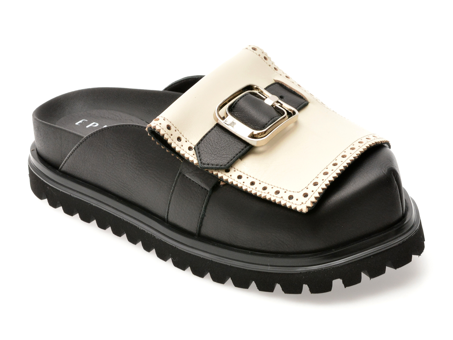 Papuci EPICA negri, 043GM97, din piele naturala face parte din categoria Femei > Papuci de la brandul Epica.