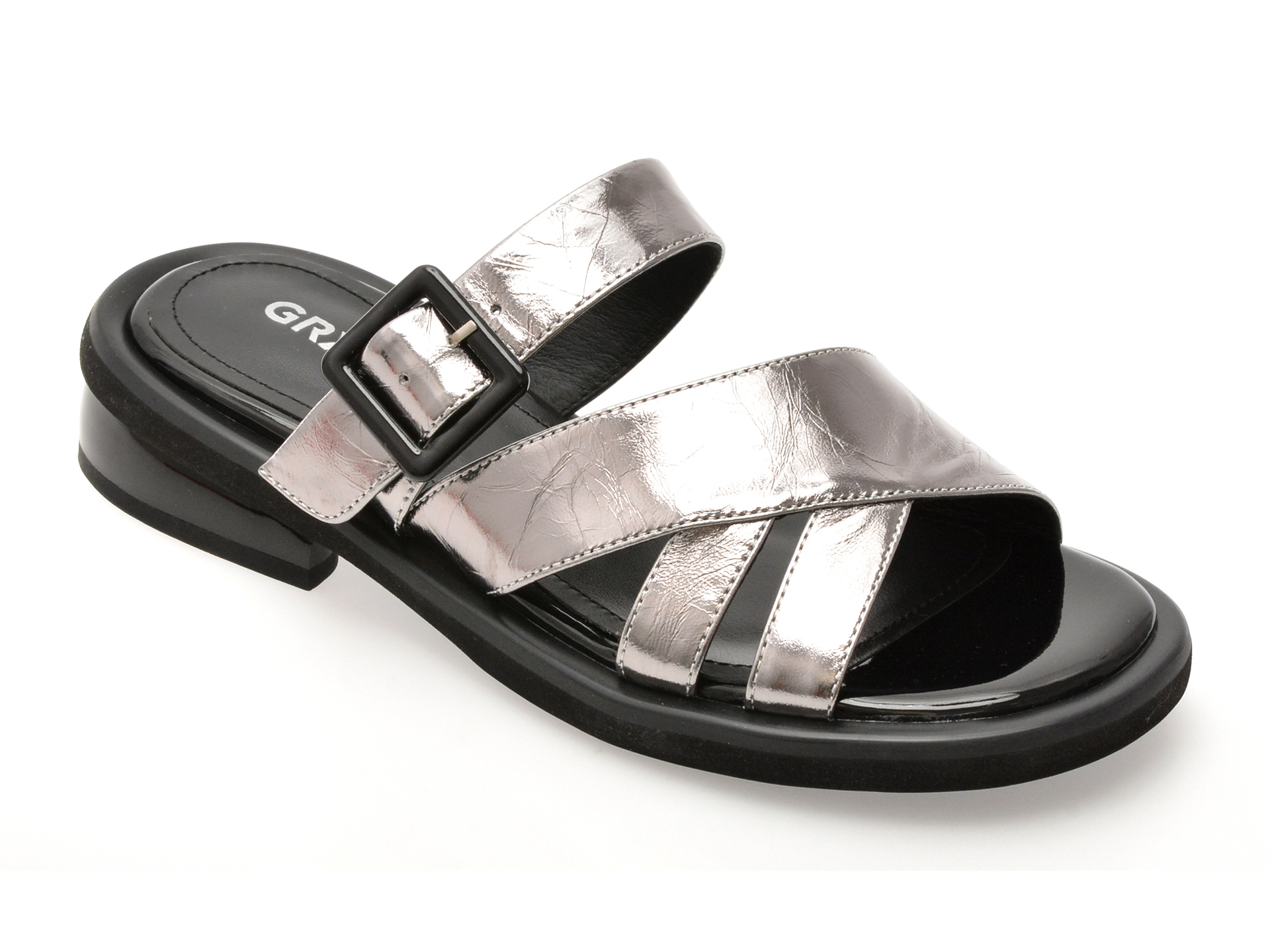 Papuci GRYXX argintii, H757, din piele naturala face parte din categoria Femei > Papuci de la brandul Gryxx.