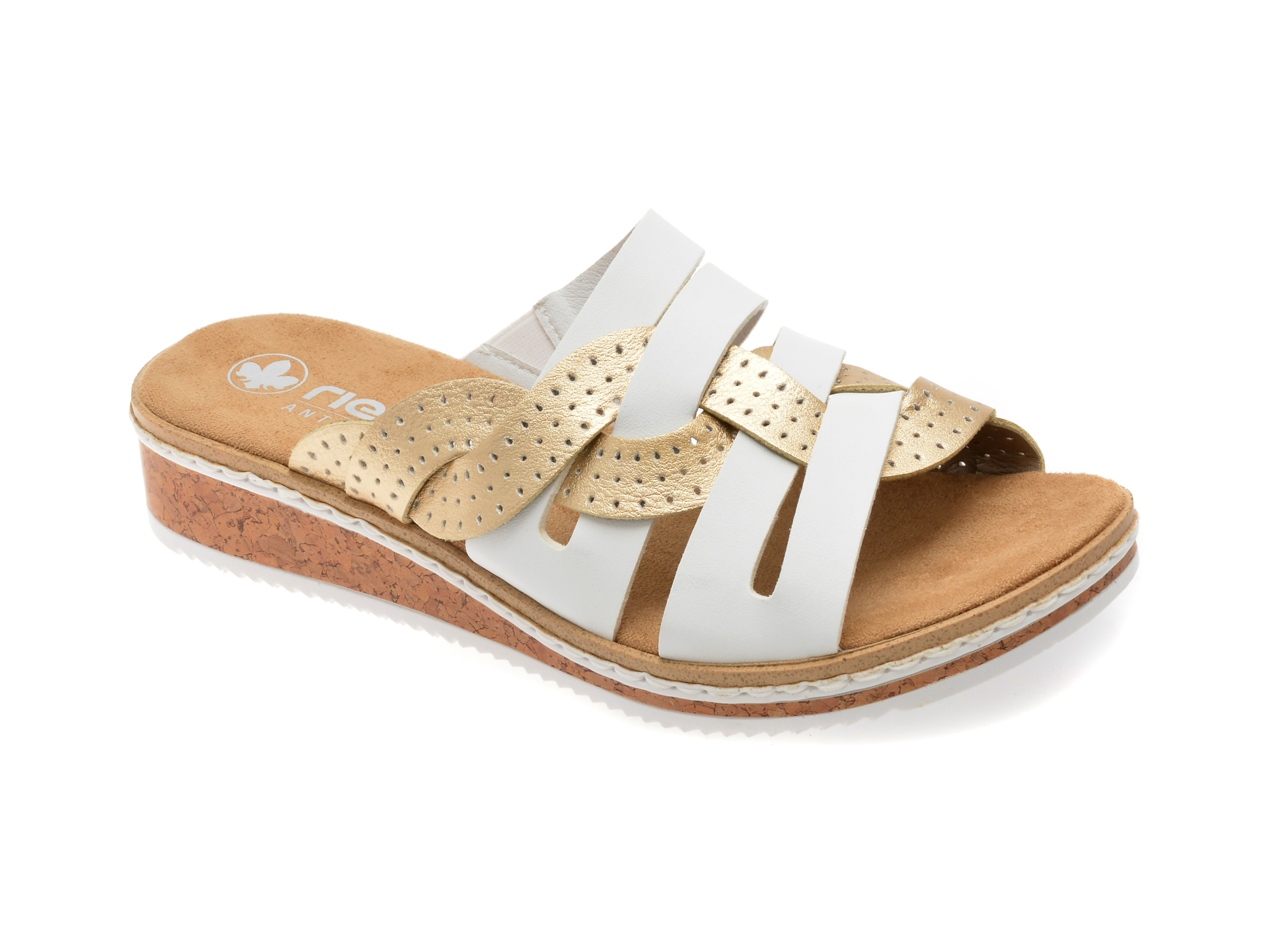 Papuci RIEKER albi, V3678, din piele ecologica face parte din categoria Femei > Papuci de la brandul Rieker.