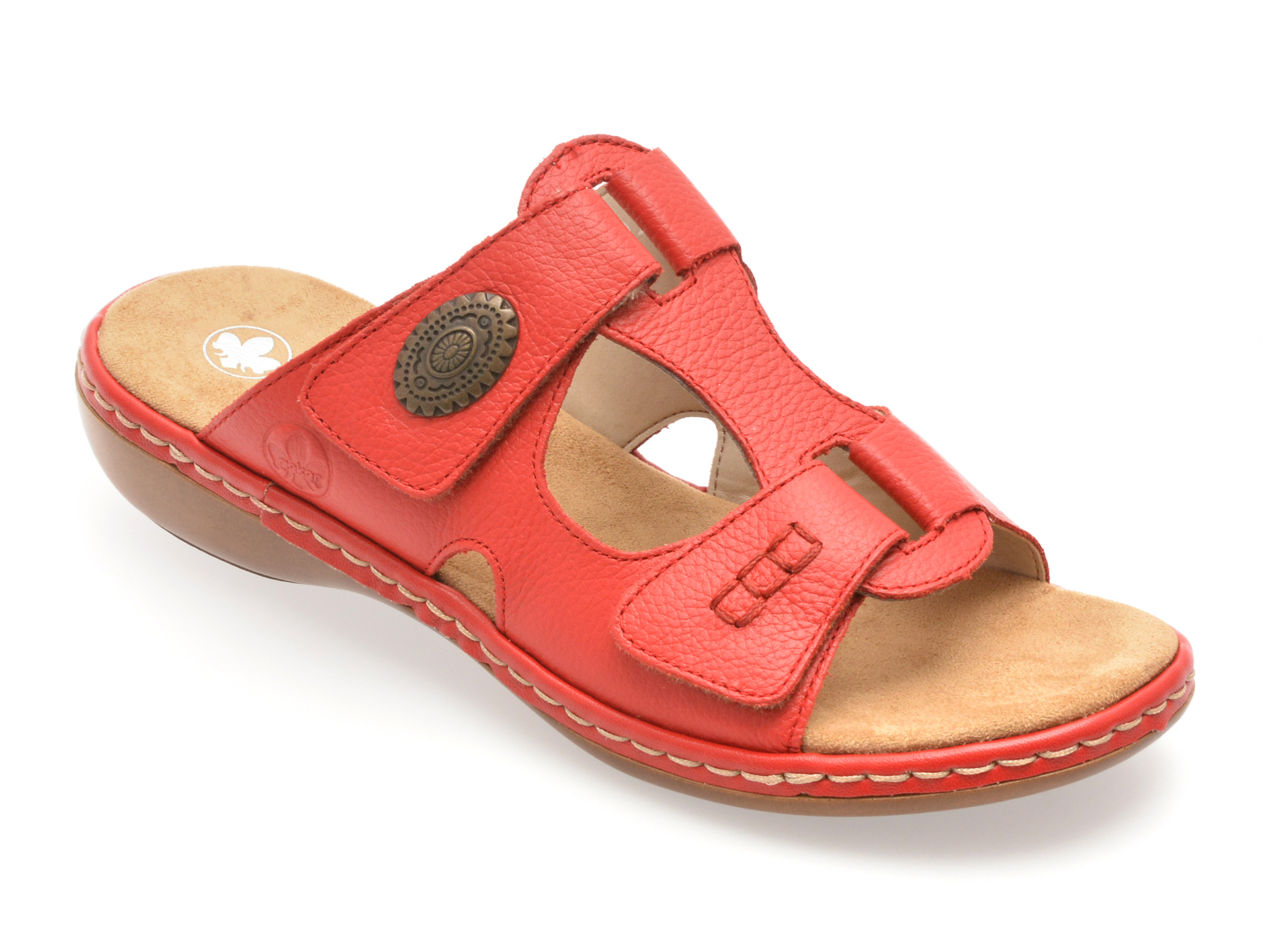 Papuci RIEKER rosii, 65958, din piele naturala face parte din categoria Femei > Papuci de la brandul Rieker.