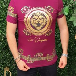 Tricou de barbati slim fit rosu cu imprimeu auriu Le Designers – TR175