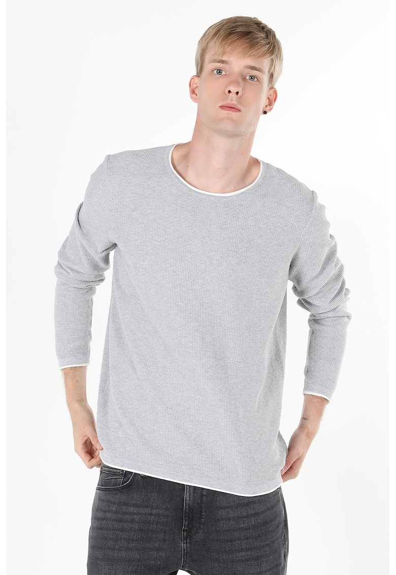 Pulover texturat cu decolteu la baza gatului si terminatii contrastante face parte din categoria BARBATI/IMBRACAMINTE/Pulovere si cardigane IMBRACAMINTE/Pulovere si cardigane de la brandul COLIN’S.