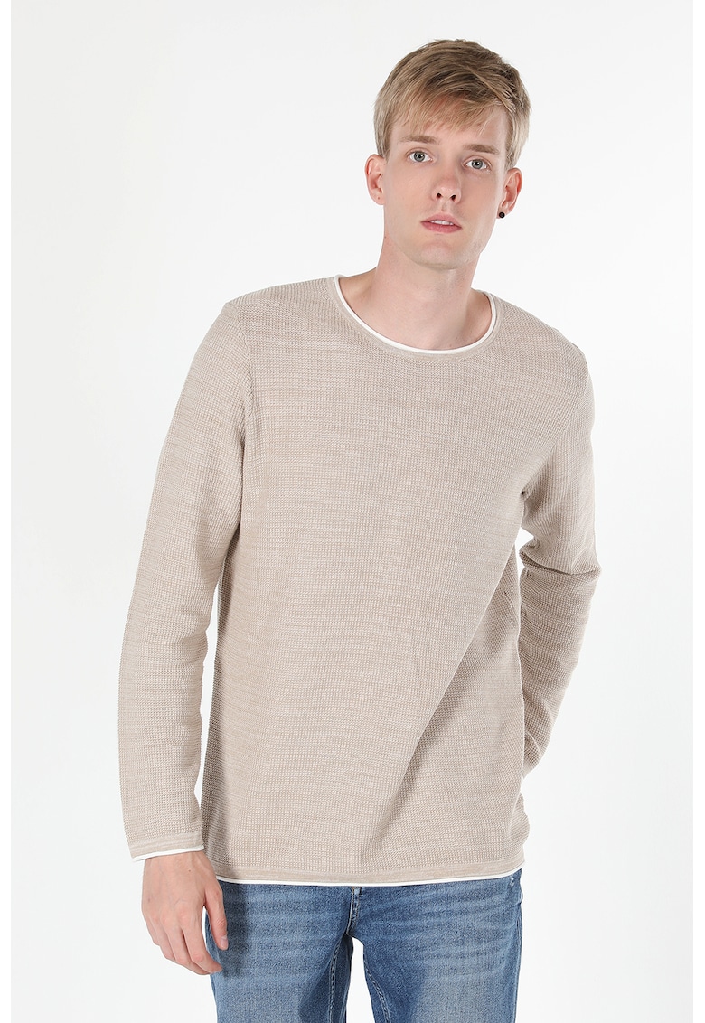 Pulover texturat cu decolteu la baza gatului si terminatii contrastante face parte din categoria BARBATI/IMBRACAMINTE/Pulovere si cardigane IMBRACAMINTE/Pulovere si cardigane de la brandul COLIN’S.