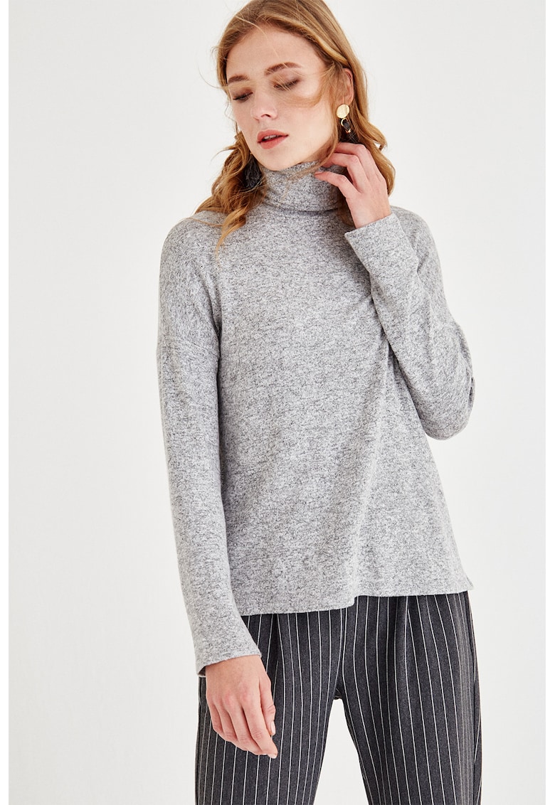 Pulover tricotat fin cu guler inalt si maneci cazute face parte din categoria FEMEI/IMBRACAMINTE/Pulovere si cardigane IMBRACAMINTE/Pulovere si cardigane de la brandul OXXO.