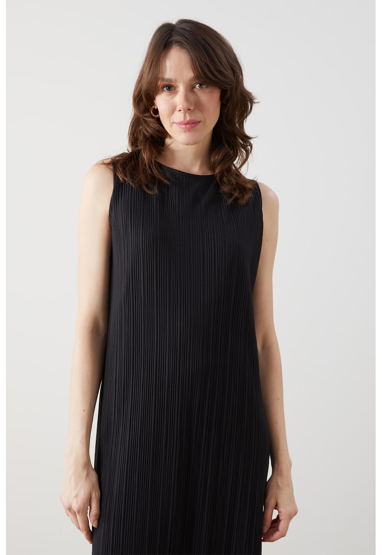 Caracteristici Culoare: negru Material: poliester Imprimeu: uni Croiala: dreapta Lungime: midi Lungime maneca: fara maneca Compozitie Exterior: 100% poliester