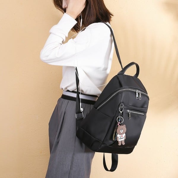 Rucsac modern pentru dame, care poate fi asortata cu usurinta la o tinuta casual! Detalii produs: 1 compartiment principal; interior captusit; la exterior, doua buzunare frontale ce se inchid cu fermoar; un buzunar exterior, spate, cu fermoar; material: nylon impermeabil; dimensiuni: 32 x 26 x 19 cm Important : Culoarea produsului poate varia ușor datorită luminozității monitorului. Din cauza varietății instrumentelor de măsură, pot exista ușoare erori de cm.